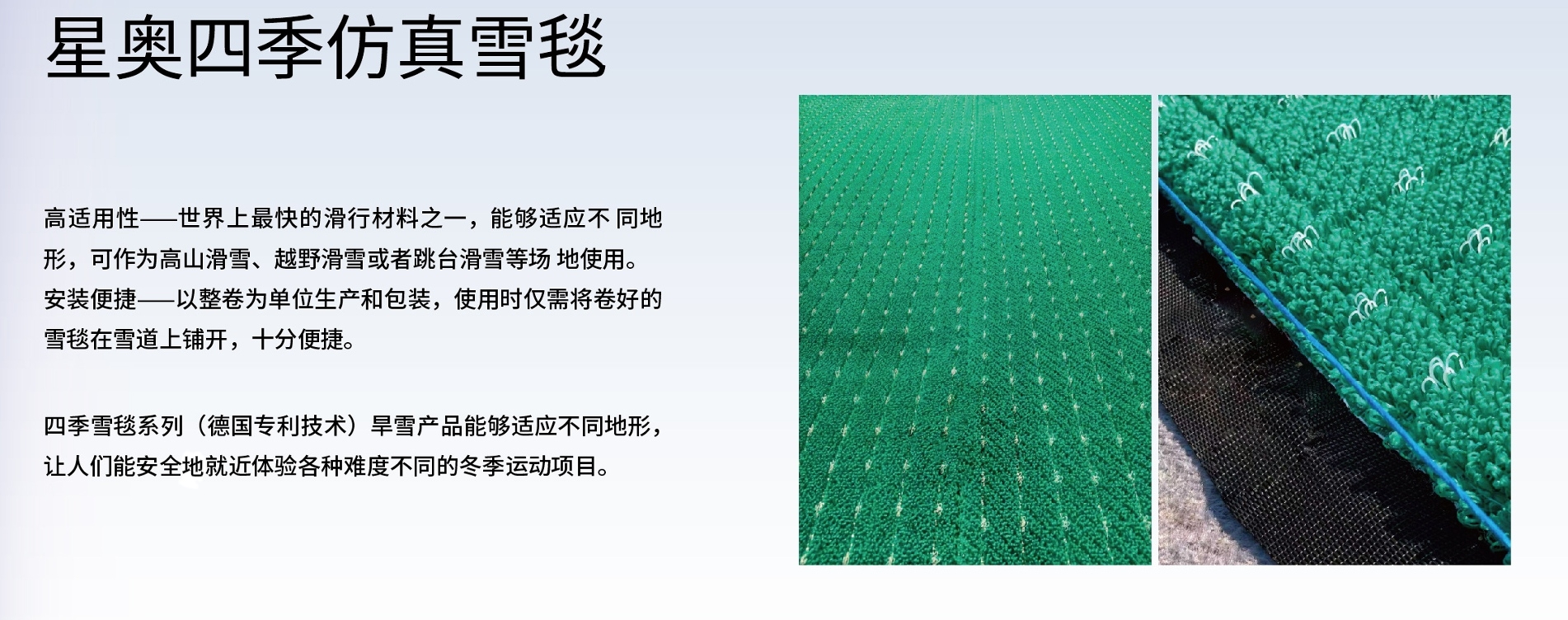 四季雪毯系列(德国专利技术)旱雪产品能够适应不同地形,让人们能安全地就近体验各种难度不同的冬季运动项目。